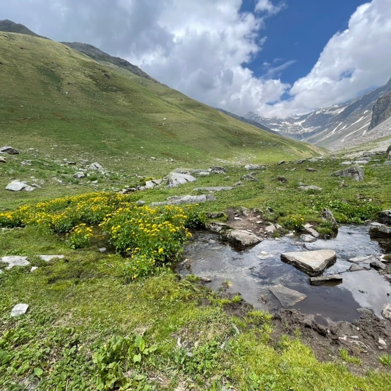 Upon arrival, we were not allowed to rest. Instead, after some refreshments, we went on a short training session (unmarked trail discovery) to prepare for the next day’s challenge — a hike to Chandranahan Lake at 13,900 feet, followed by a descent on the same day. This hike served as our acclimatization exercise.