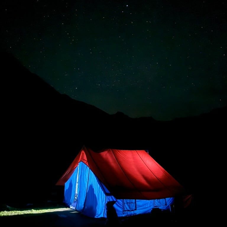 At 10:30 pm, I left my tent. The campsite was quiet and empty. I wandered for a bit and then sat down in an open area. As I sat there, the clouds parted, revealing a stunning night sky filled with stars. I stayed there for about an hour, mesmerized by the beauty of the night. It was a breathtaking sight and a treat for my eyes. Gradually, others began to wake up, and by 1:30 am, the clouds had returned.