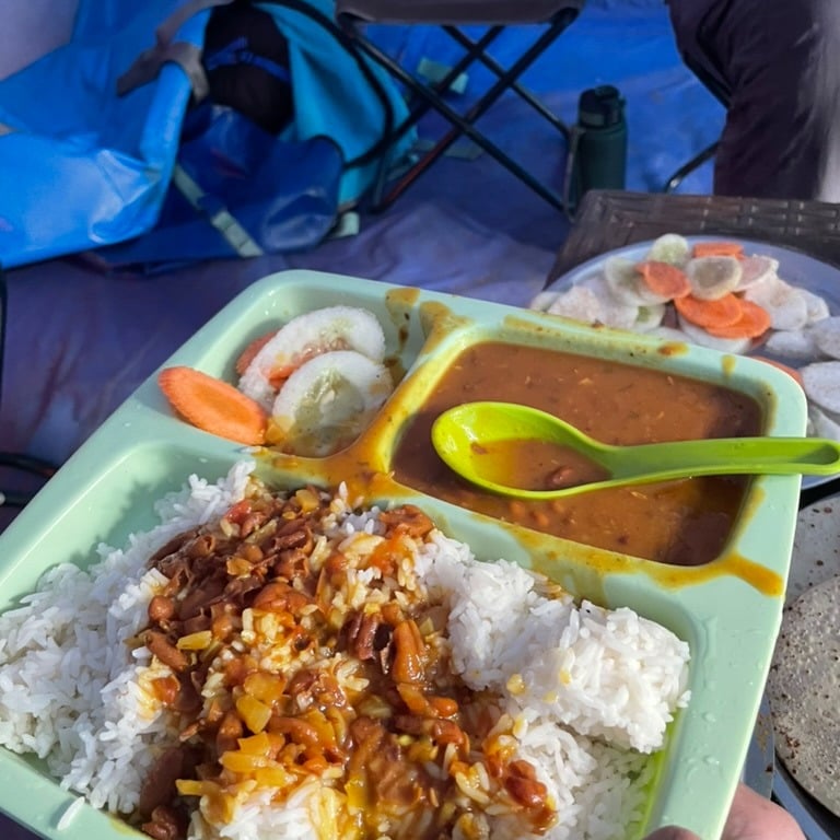 As the evening progressed, a delightful surprise awaited us. I noticed our cook bringing pani puri to the dining tent. Although I am not usually very fond of this snack, the excitement around me was contagious. I volunteered to serve as the pani puri walaa. The meal was delicious, but what made it truly special were the joyful expressions of my fellow trekkers.